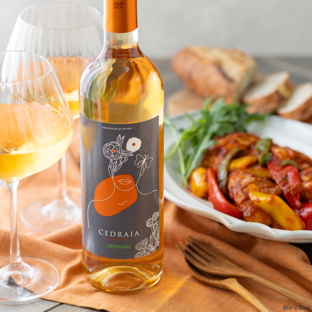 果実の香りがふわりと広がり、味わいはしっかり。辛口のオレンジワインで、カレーのようなスパイス料理ともよく合います。