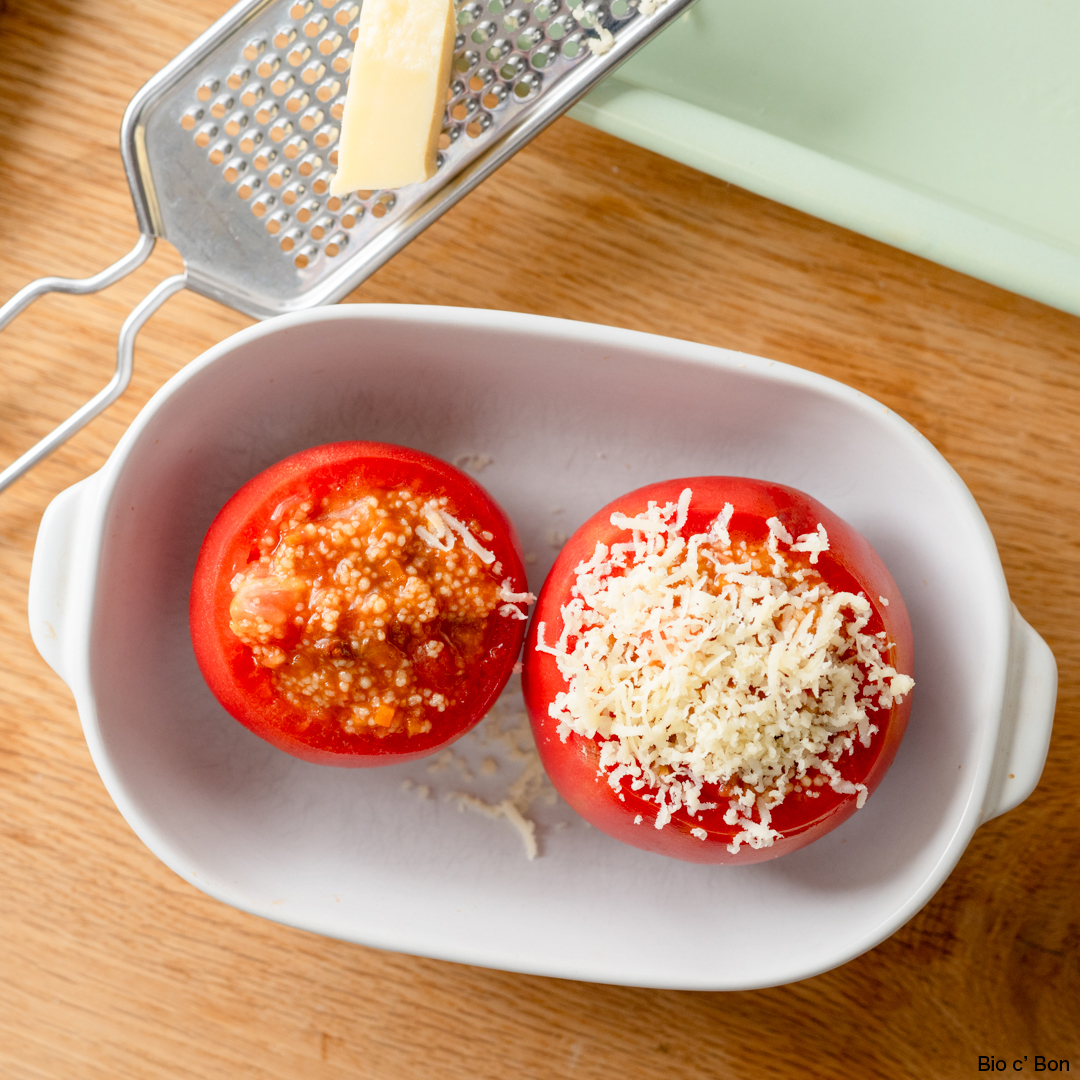フランスの定番「トマトファルシ」を、ミートソースを使って簡単に!クスクスを入れてお腹も満足な一品です。冷やしてサラダ風にしても美味しいですよ。