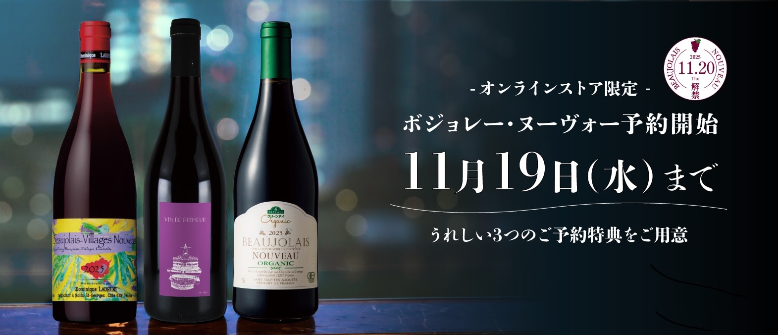 今年の解禁日は11月20日(木)。一年に一度の「収穫を祝う特別なワイン」を楽しみましょう。ビオセボンバイヤーが厳選した3種類のワインをぜひお試しください。
