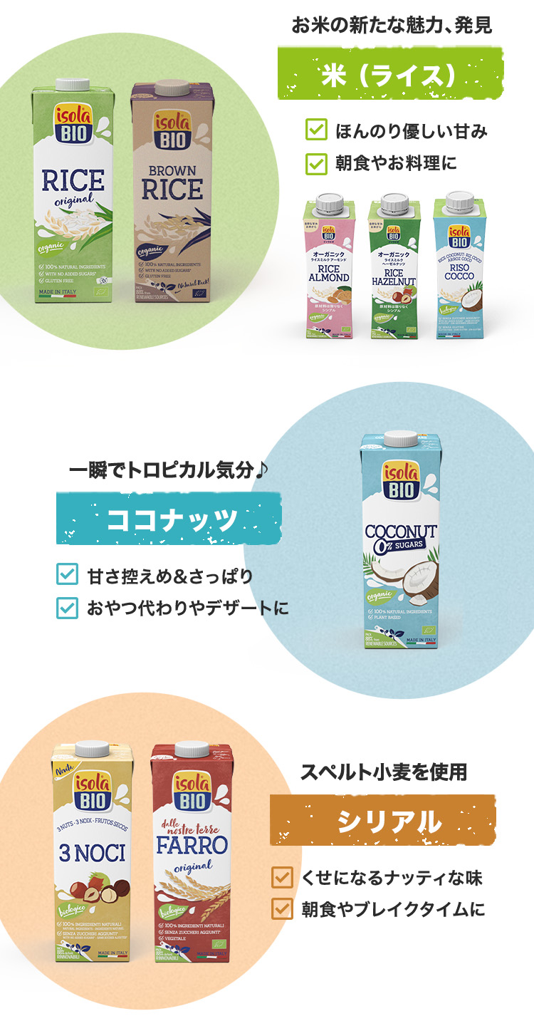 A. どなたさまでもお召し上がりいただけます。お米のほのかな優しい甘さと、さらりとした口あたりのライスミルクシリーズ(250ml)は、初めて植物性ミルクをお試しいただく方やお子さまにも大人気!