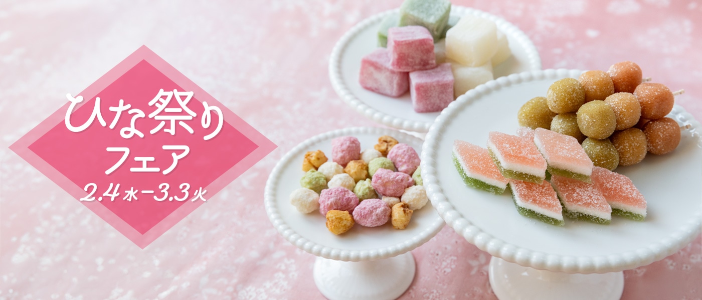 カラフルなひな菓子や甘酒など、お祝いのシーンを華やかにしてくれるアイテムを揃えました